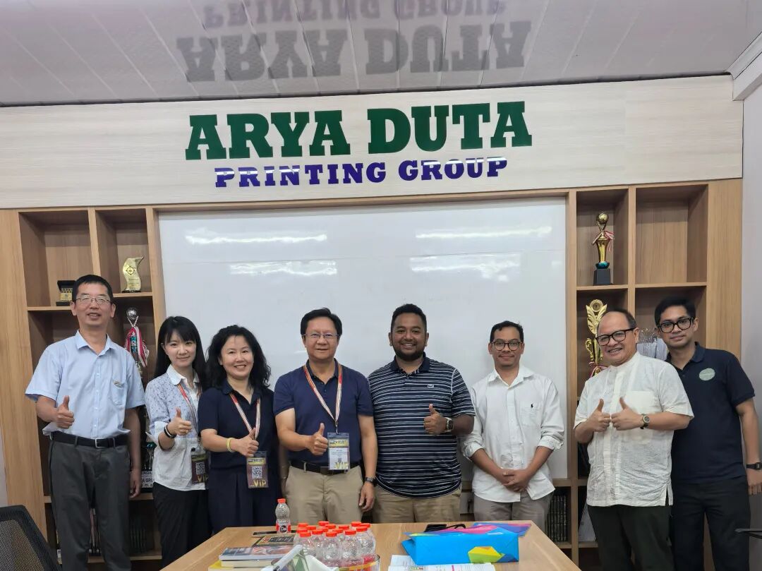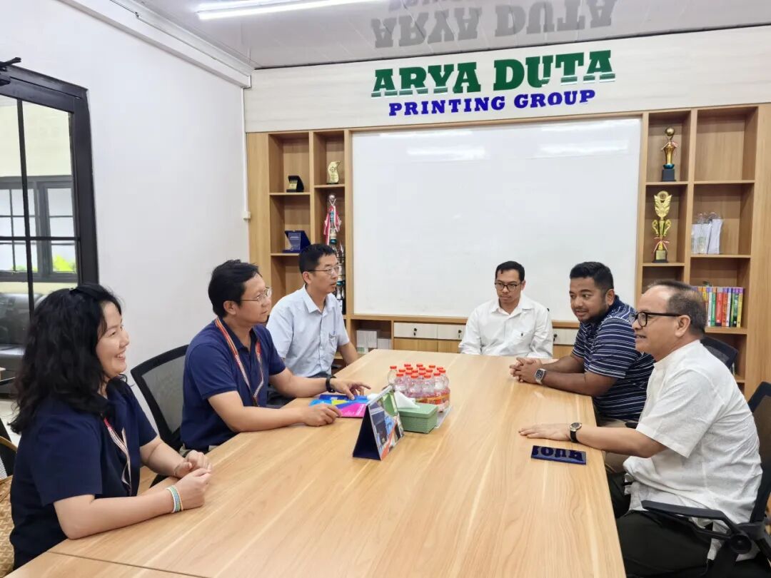 ARYA DUTA Printing group 则聚焦书刊印刷领域,业务覆盖标签印刷、特种贴纸等多个品类,服务医药、食品饮料、电子等众多行业,是印尼书刊印刷市场的重要服务商。在雅加达印刷一条街,调研团直观感受到当地印刷产业的集聚活力与设备升级需求。